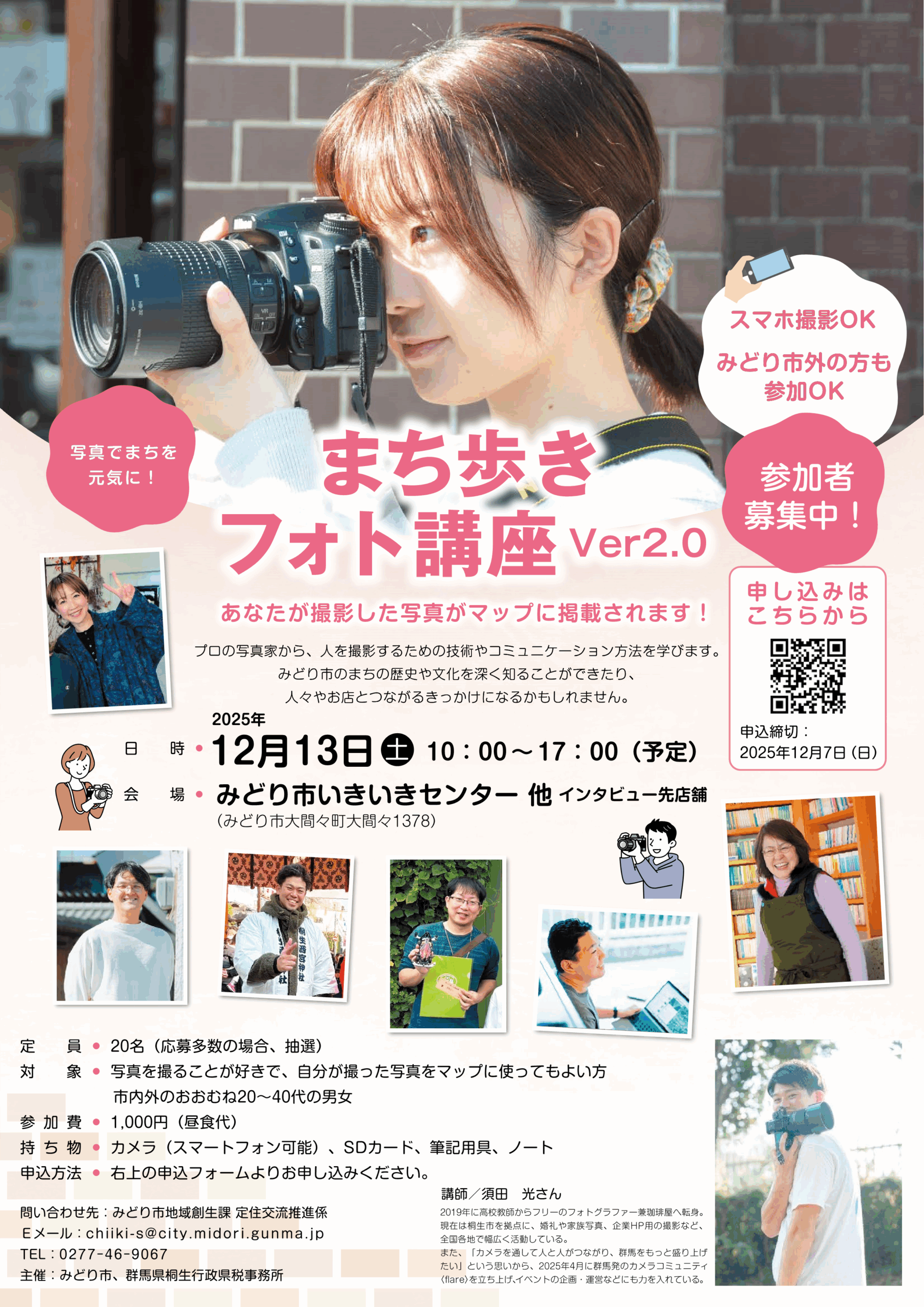 【みどり市】12/13(土)10:00~17:00〔予定〕まち歩きフォト講座 Ver.2.0~あなたのカメラで、まちの人を撮ろう!~