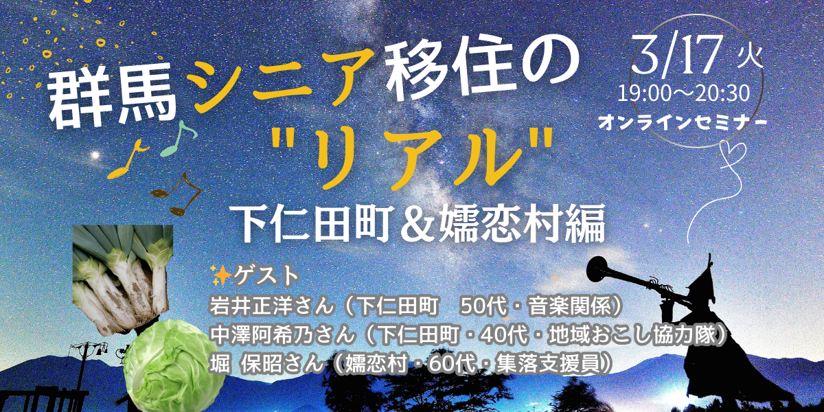 【3月17日(火)|オンライン】群馬シニア移住のリアル~下仁田町&嬬恋村編~