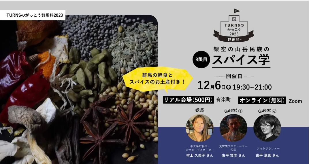 「TURNSのがっこう群馬科2023」8限目のテーマは、スパイス学です!しかし、ただ単にスパイスについて学びましょうという回ではございません。