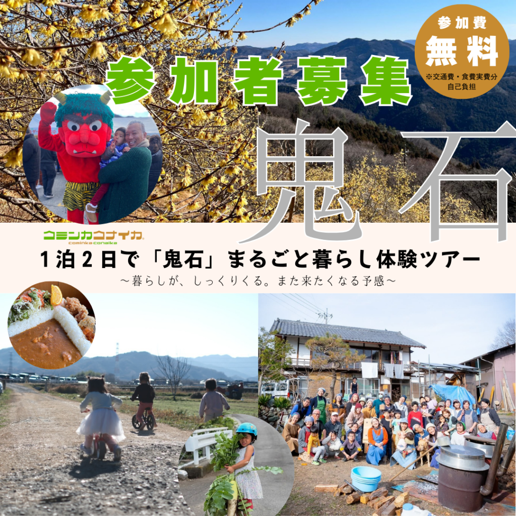 鬼石のコミンカコナイカが 2026年3月14日・15日に、群馬県藤岡市鬼石町をめぐる 1泊2日の移住モニターツアーを開催します。