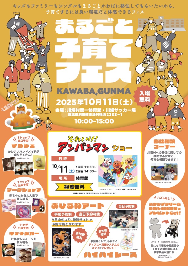 【川場村・場所変更】10/11(土)「まるごと子育てフェス」(入場無料)参加者募集中