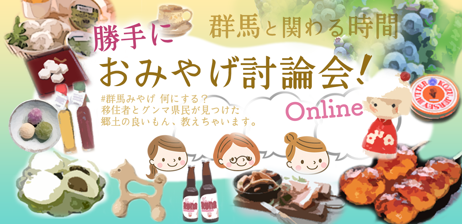 今回の「群馬と関わる時間」のゲストは、県内各地に移住をした先輩移住者さん×グンマ県民!ゲスト独自の視点で選んだお土産(在住地、県内全域のもの)について、群馬県での日常生活や移住前の暮らし、移住後の活動などを踏まえながらご紹介します。