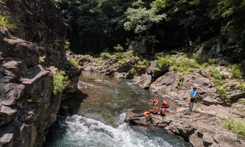 週末は、私たち指導員がレクリエーションを企画して遊ぶんです。登山が趣味の私はアウトドア担当。みんなで山に登ったり、サイクリングをしたり、夏は川遊びにも。近くを流れる神流川がすごくきれいで、天然のウォータースライダーや飛び込み台は子どもたちに大人気です。