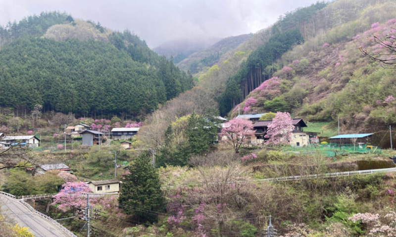 小金井さんの散歩コースからの眺め。山々の色や花、山菜から季節の訪れを実感している。