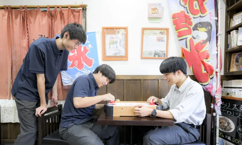 「みんなで机に向かう自習室」のようなものを想像していたのですが、笑い声が聞こえたり、ボードゲームを楽しんでいたりと、だいぶにぎやかですね。