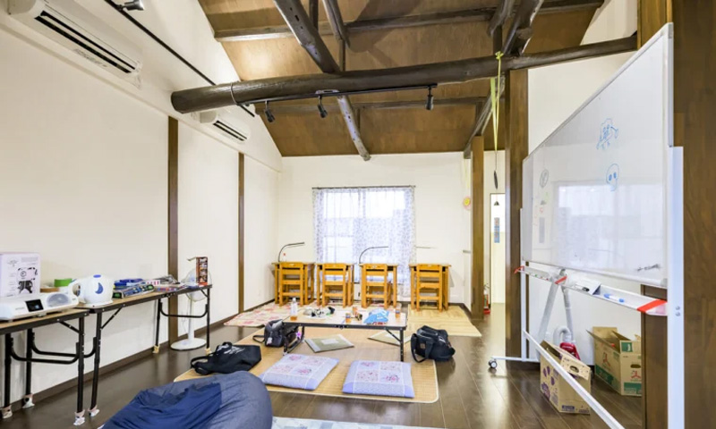 子どもたちの笑い声が絶えない伊勢崎まちなかユーススペース。中学校で使われなくなった机なども持ち込み、自由に活用できる空間に。