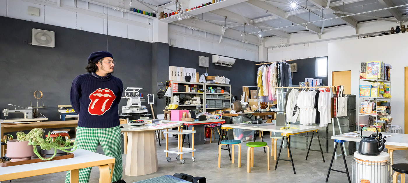 昔ながらの佇まいを残す店舗が軒を連ねる桐生市本町六丁目商店街に、思わず足を止めたくなる風変わりな店がある。ガラス越しに見えるのは、本格的な工業用ミシンと天井まで高く積まれた色鮮やかなボードゲームの箱。ここはファッションデザイナーのアトリエでありながら、夜には大人や学生たちが集う遊び場へと姿を変える「ふふふ」という名のアトリエ兼カフェ。歴史とカルチャーが交差する織物の街に惚れ込み、東京から移住して6年余り。オーナーの和﨑拓人さんの目に映る、桐生の魅力とは。